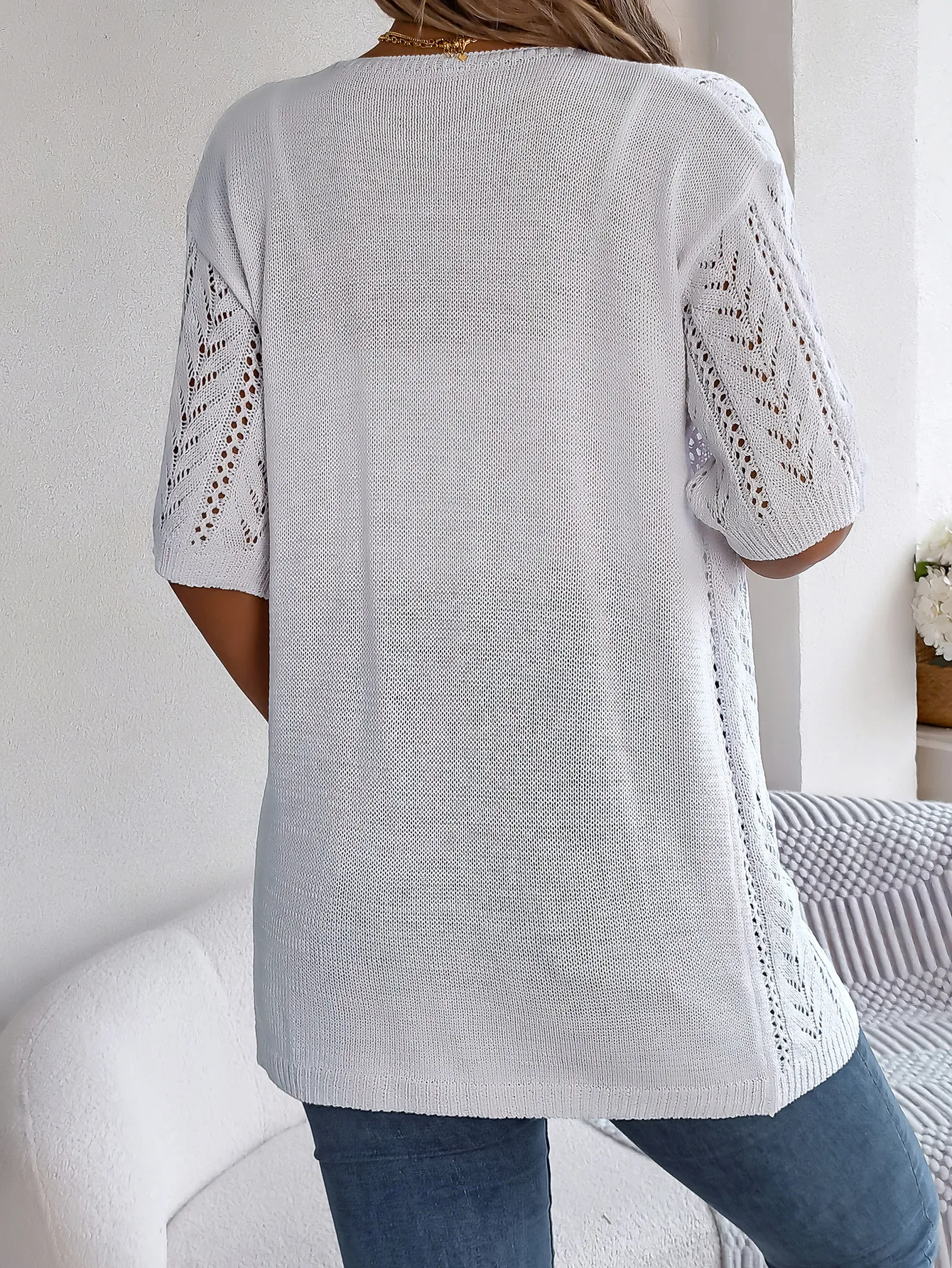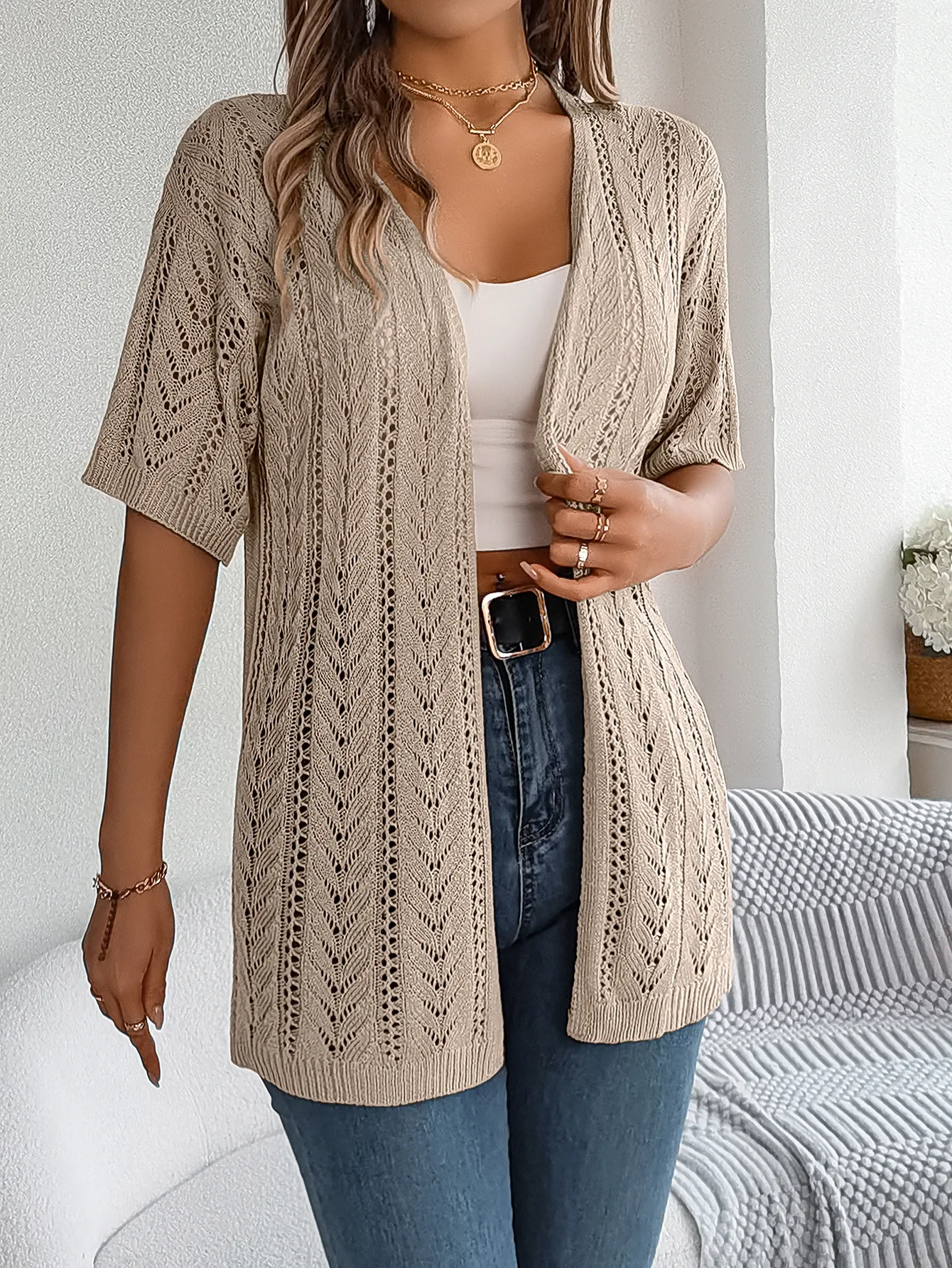 Ins Style 2025 Summer Hollow Out Short Sleeve Knit Cardigan Vacation Sunscreen Shirt for Women Lightweight Beachwear Top