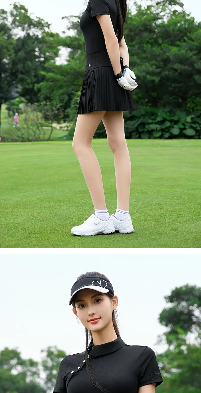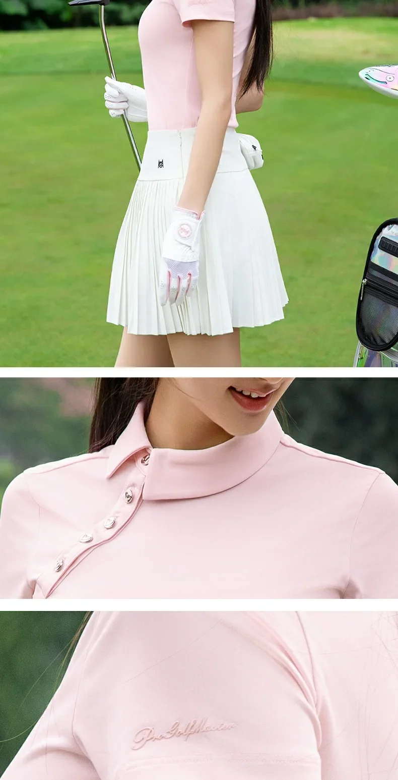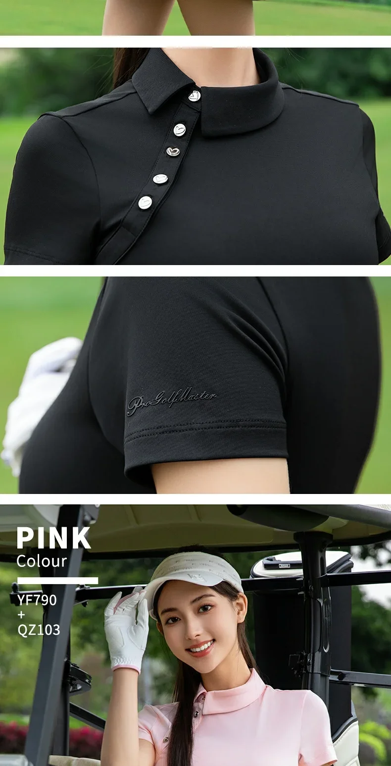 PGM Women Vintage Chinese Style Golf T-Shirt Summer Mandarin Collar Slim Tops Quick-Dry Cooling Sports Shirts Leisure Elegant