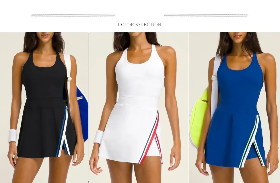 Women 2025 Golf Tennis Dress with Shorts Inside Backless Badminton Dress Lady Sleeveless Slim Sports Skirts Split Gym Skorts